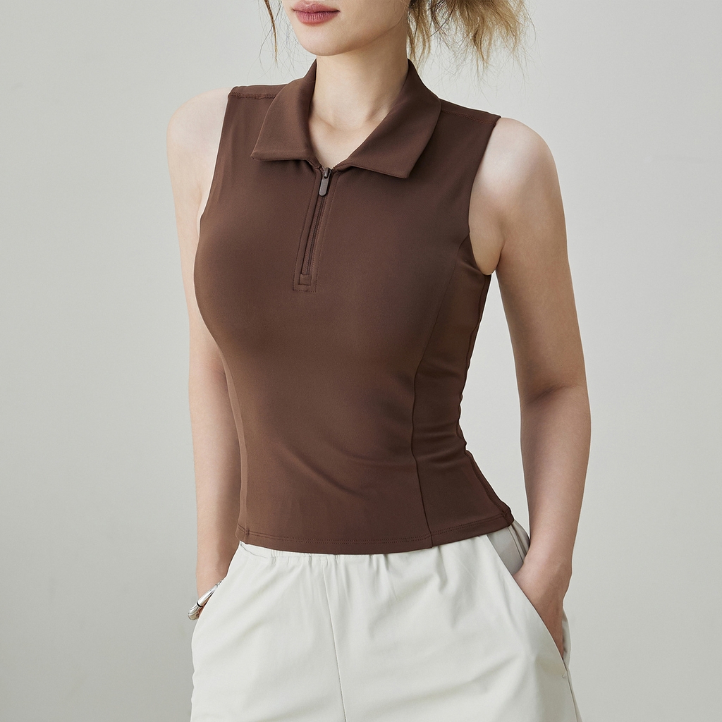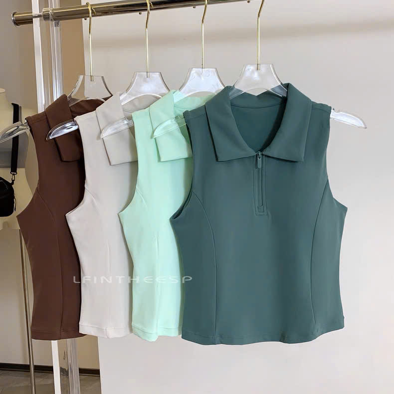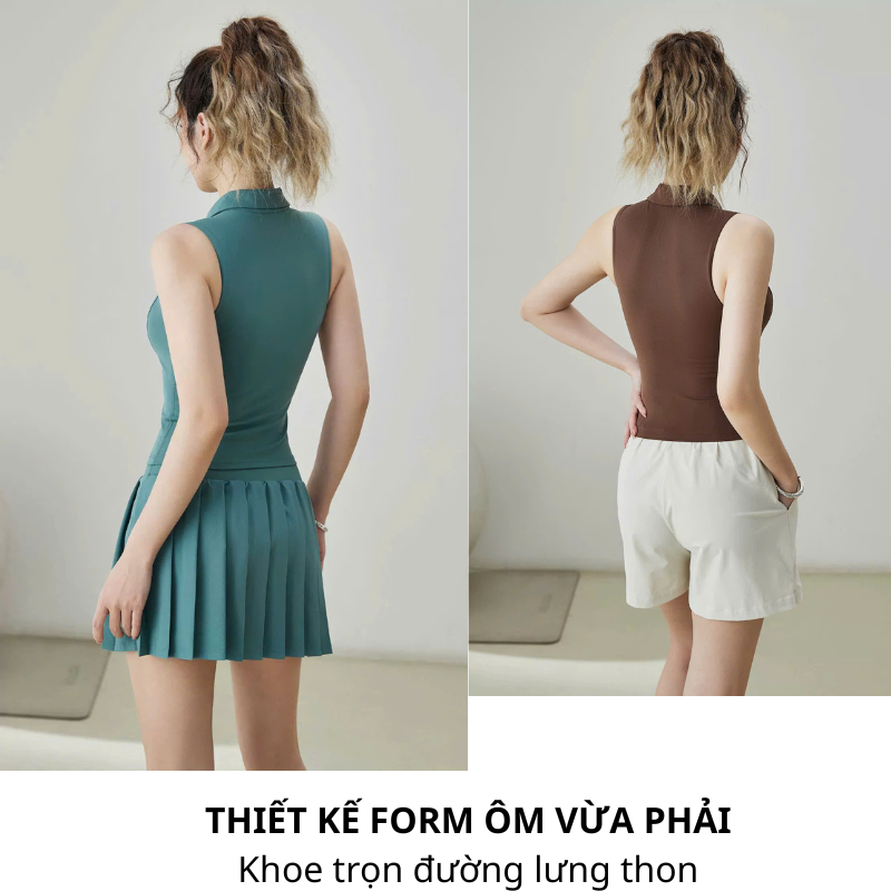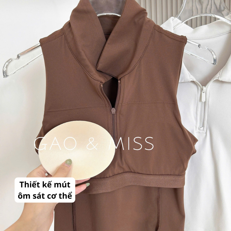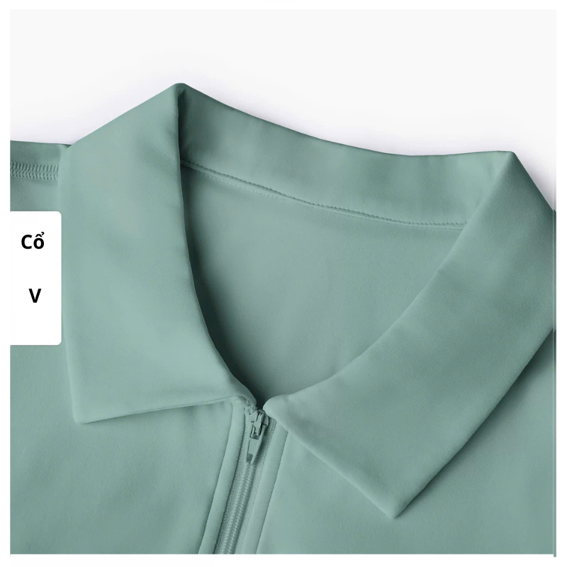 - Thiết kế: Áo cổ Polo, kéo khóa nửa; ôm form nhưng không nhăn. Thiết kế lớp lót bra có mút ngực tiện lợi khi chơi thể thao