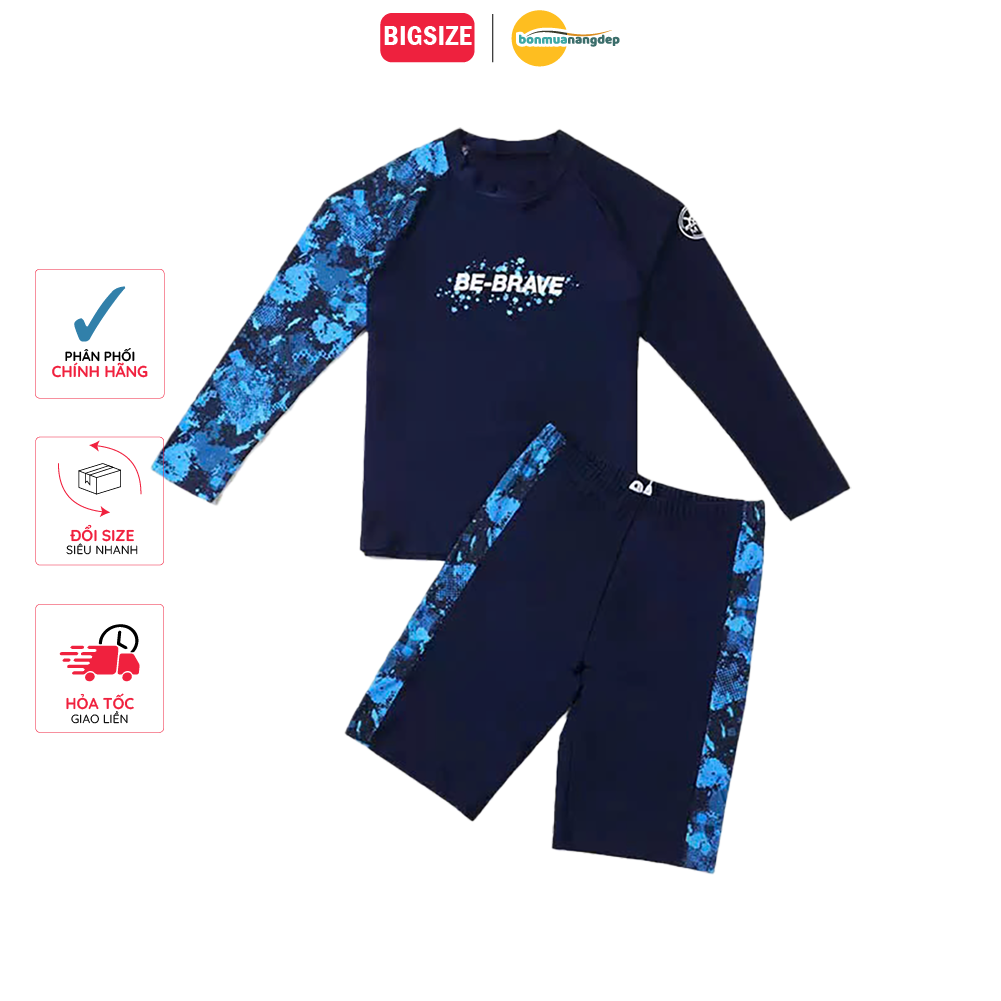BỘ ĐỒ BƠI BÉ TRAI BIG SIZE TAY DÀI QUẦN NGẮN SIZE CHO BÉ TỪ 34 – 73KG.