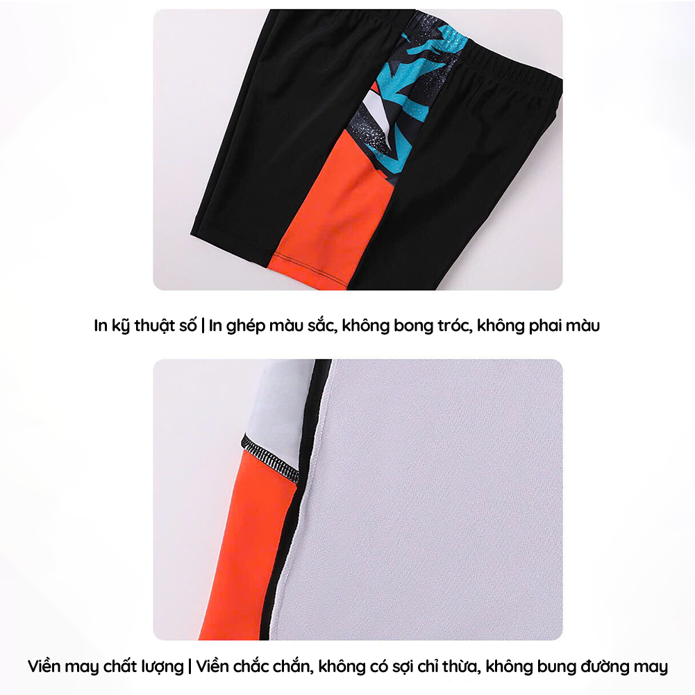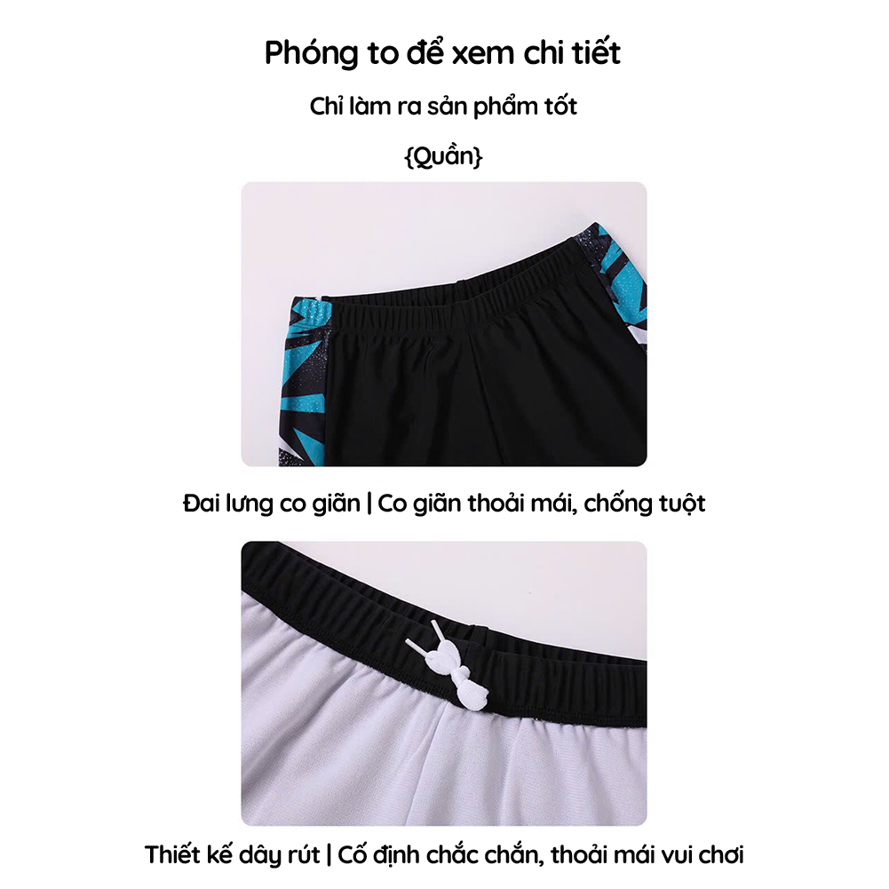 ▹ Thành phần vải bơi được làm từ chất liệu thun cao cấp chuyên dụng cho đồ bơi, vải co giãn mềm mại, thoáng khí, nhanh khô, đàn hồi tốt giúp bé tự tin vui chơi, vận động thoả thích.