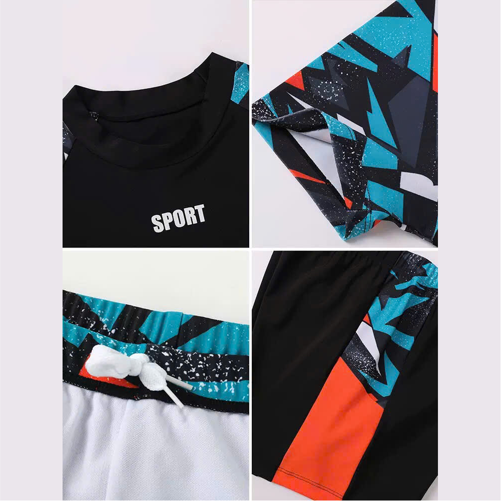 ▹ Áo bơi phối hình đơn giản không quá cầu kỳ phù hợp với các bé trai lớn.