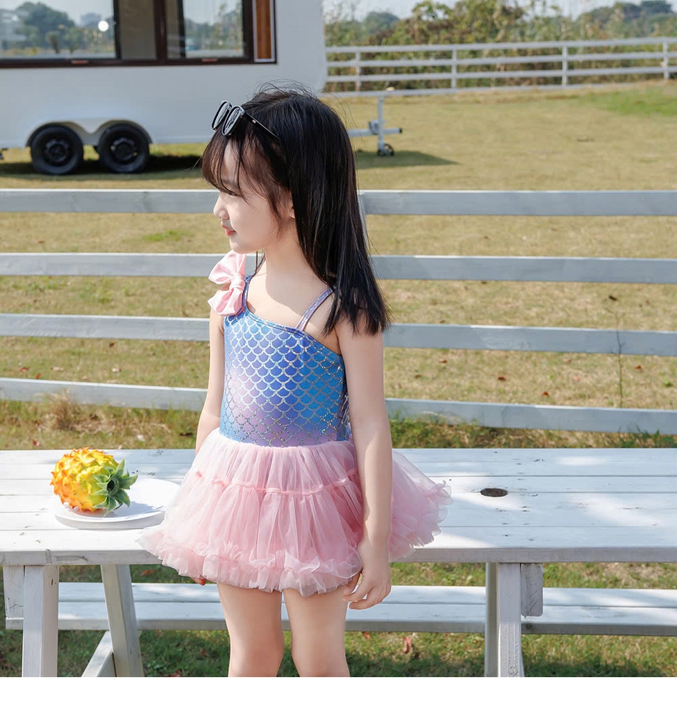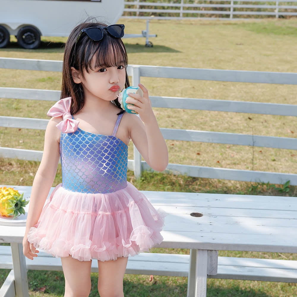 Đồ Bơi Bé Gái Công Chúa Vảy Cá Kèm Nón – Bikini Hai Dây Váy Ren Xinh Xắn Cho Bé 1-8 Tuổi