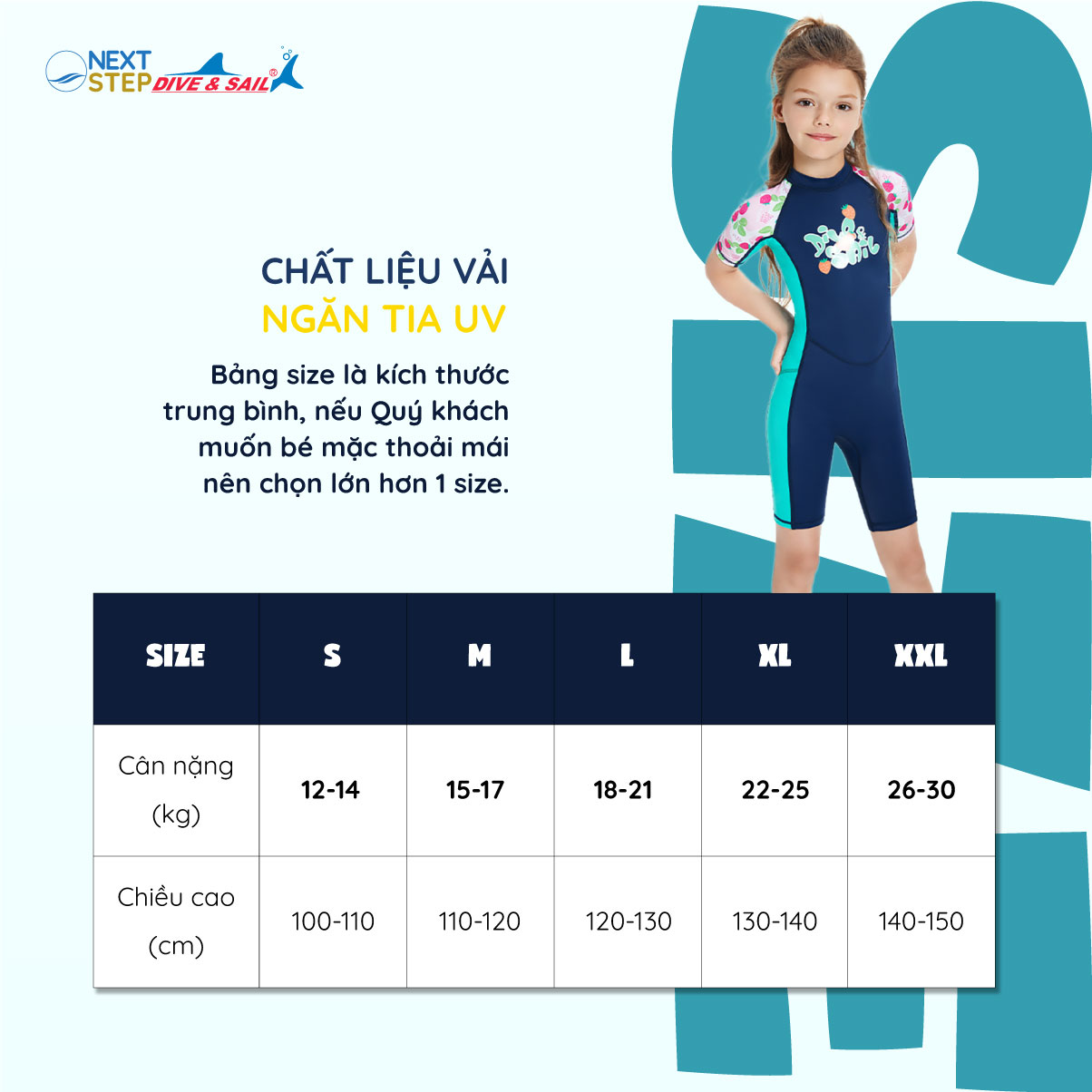 ✓ Vải có chỉ số UPF50+ chống nắng, ngăn tia UV bảo vệ da bé dưới cái nắng gay gắt. Bộ đồ bơi thích hợp cho các chuyến đi biển, vui chơi bơi lội, cho học sinh học bơi trong nhà trường và các trung tâm dạy bơi.