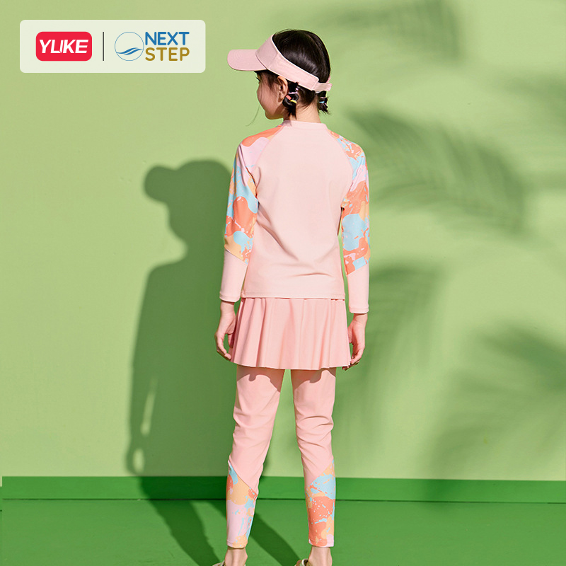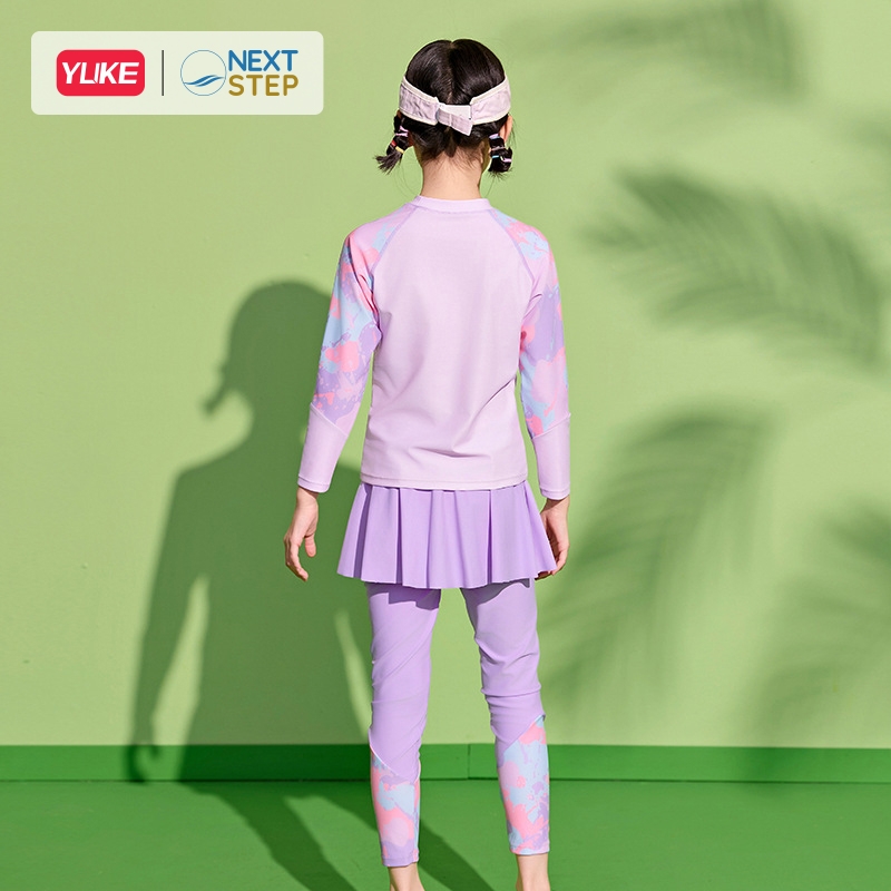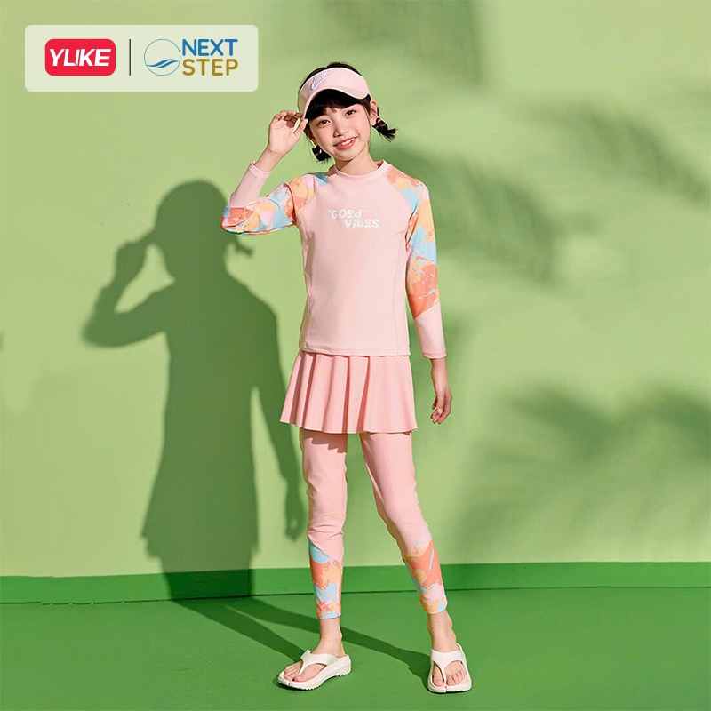 ĐỒ BƠI BÉ GÁI TAY DÀI QUẦN DÀI CHỐNG NẮNG, CHÂN VÁY LIỀN SIZE CHO BÉ TỪ 17-42KG HIỆU YUKE.