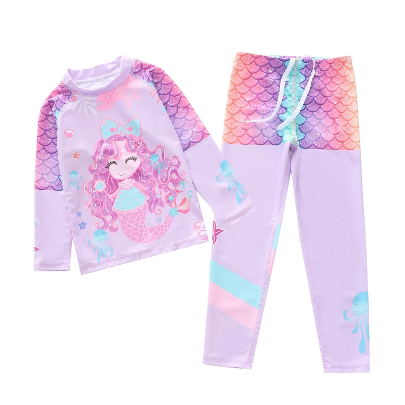 ĐỒ BƠI BÉ GÁI TAY DÀI QUẦN DÀI YUKE PHỐI CHÂN VÁY LIỀN CHỐNG NẮNG KÍN ĐÁO.