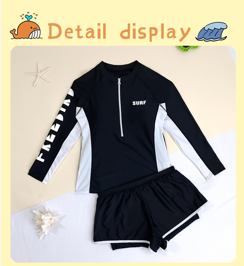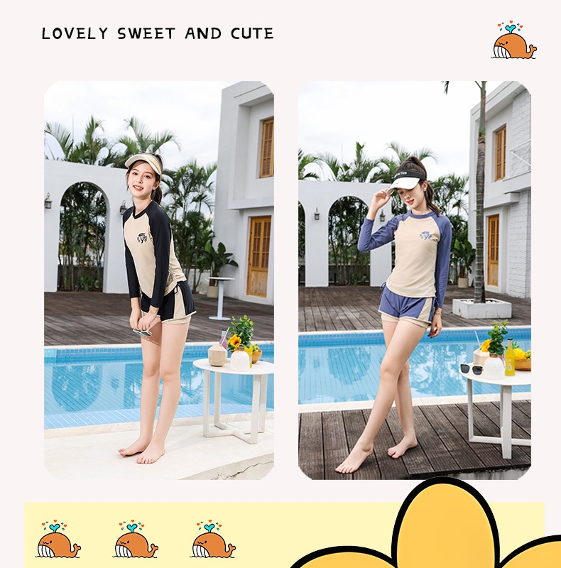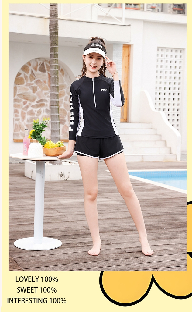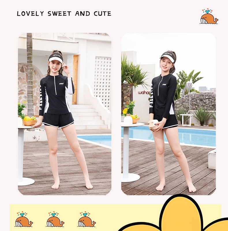 Đồ bơi bé gái thiếu niên tay dài quần đùi 2 lớp dày dặn kín đáo đa phong cách