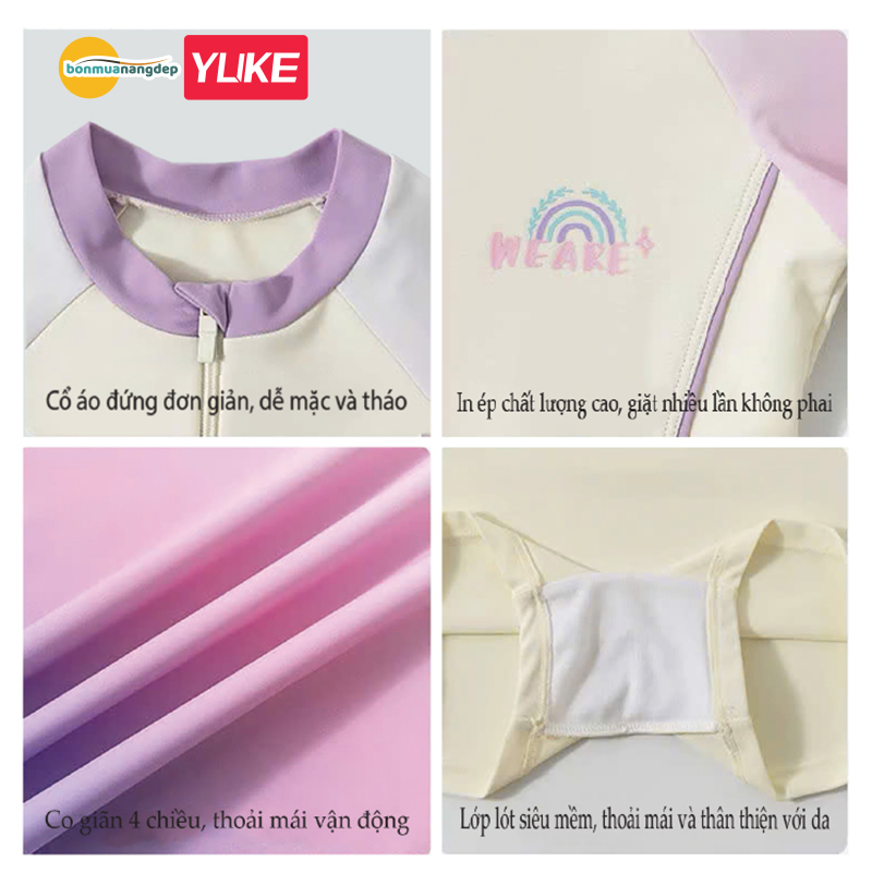✓ Đồ bơi bé gái liền thân, chân váy liền quần, có chất liệu vải mềm mại, co dãn tốt 4 chiều.