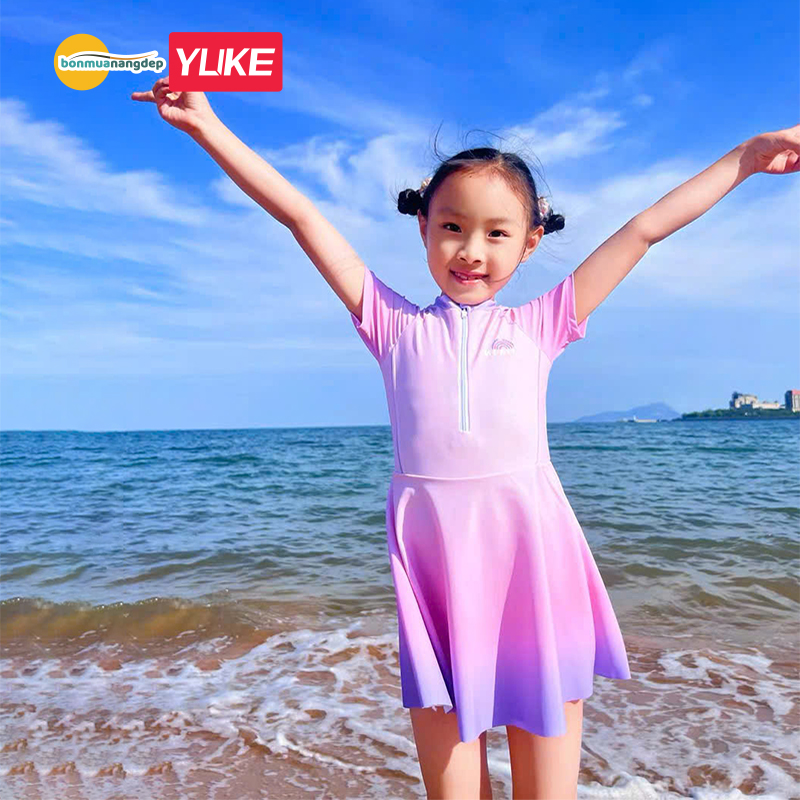 Đồ bơi bé gái YUKE chất vải mềm mại thiết kế váy liền thân dễ thương cân nặng 13-35kg
