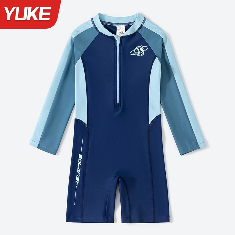 Đồ bơi bé trai tay dài quần đùi 2 lớp chống nắng hiệu YUKE, khóa kéo trước tiện lợi