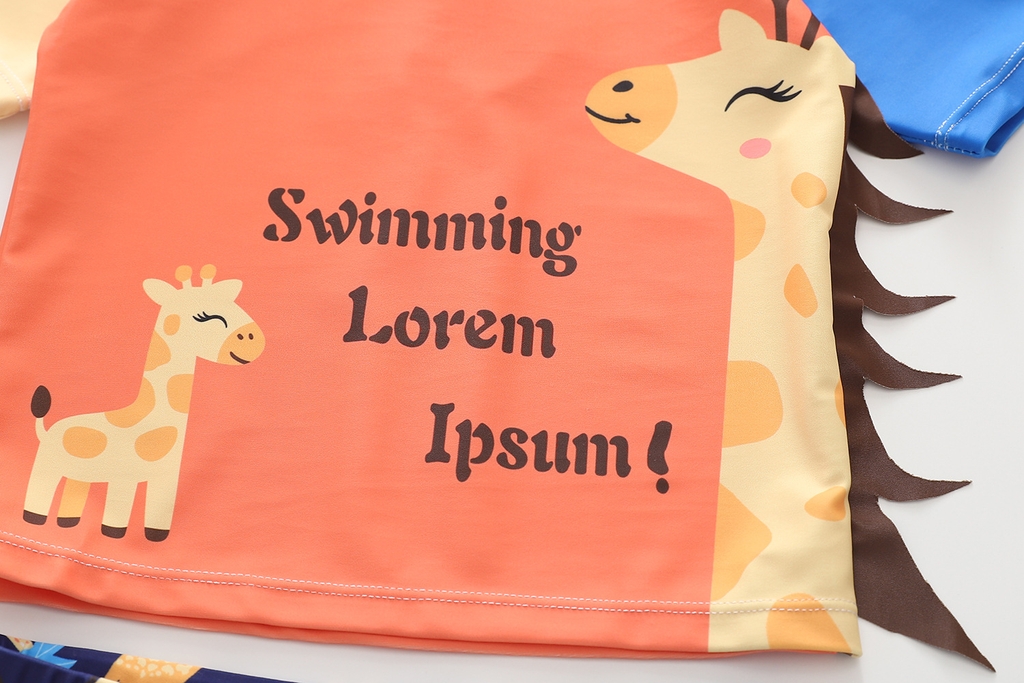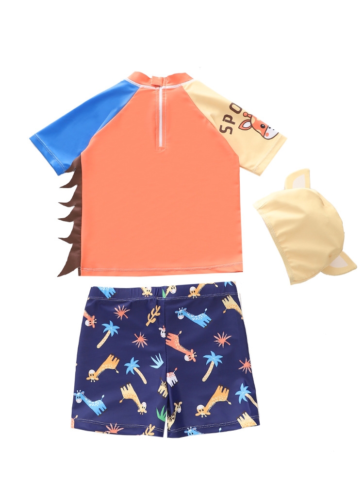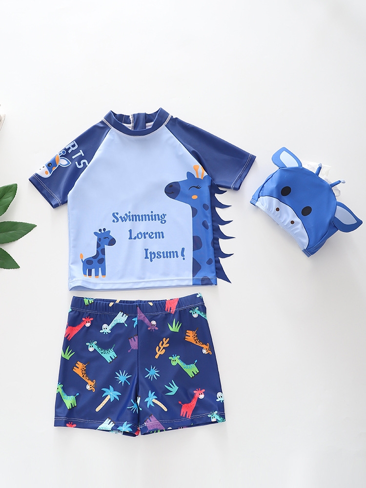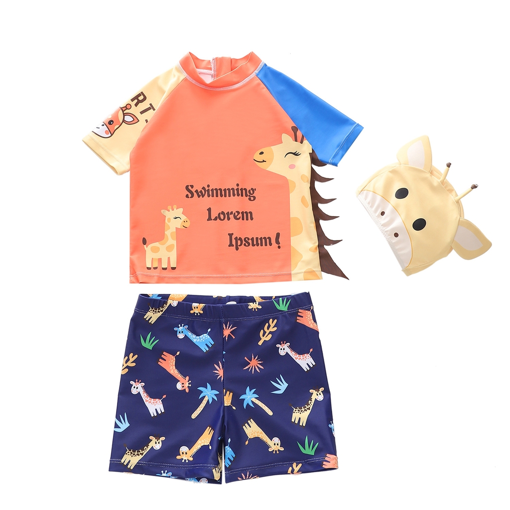 Đồ bơi bé trai tay ngắn quần ngắn họa tiết hươu cao cổ tặng kèm nón bơi đáng yêu size từ 6-24kg