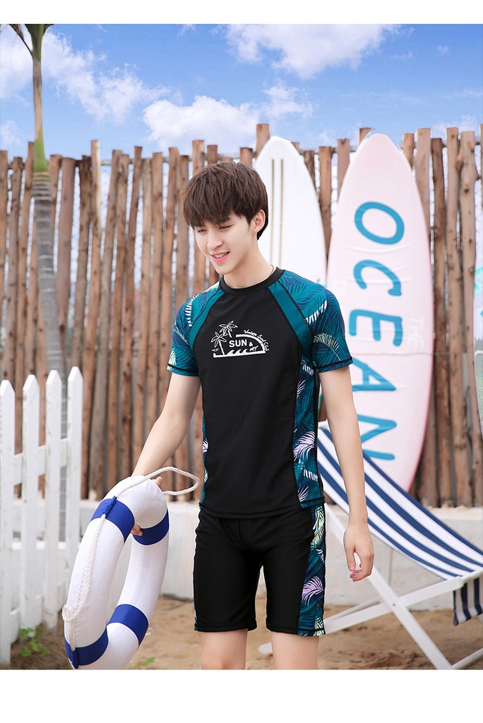 Aó bơi nam tay ngắn chất vải co giãn mềm mại mát lạnh phối combo QSF881