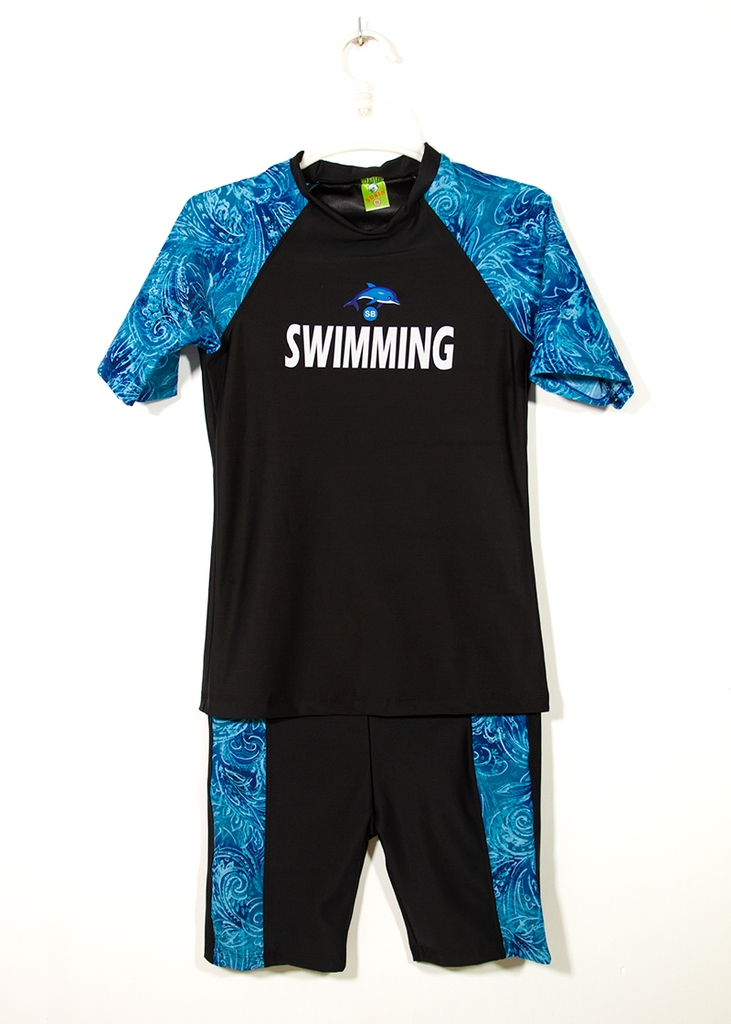 Aó bơi nam tay ngắn chất vải co giãn mềm mại mát lạnh phối combo QSF881