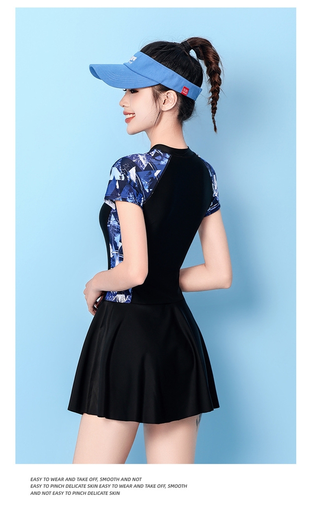Đồ bơi Nữ liền thân tay ngắn chân váy quần đùi YY82301-1