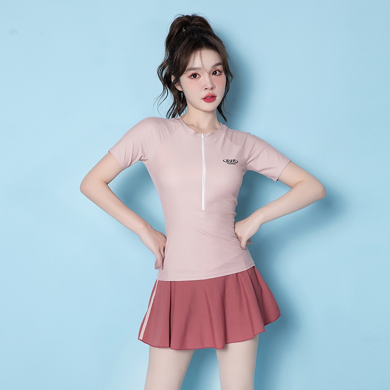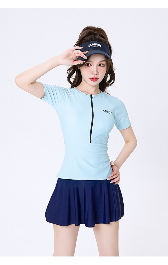 Đồ bơi nữ tay ngắn chân váy, quần ngắn phối 2 màu trẻ trung thời trang chất vải co giãn 4 chiều đàn hồi tốt