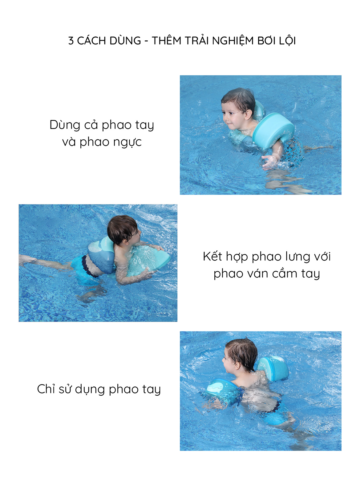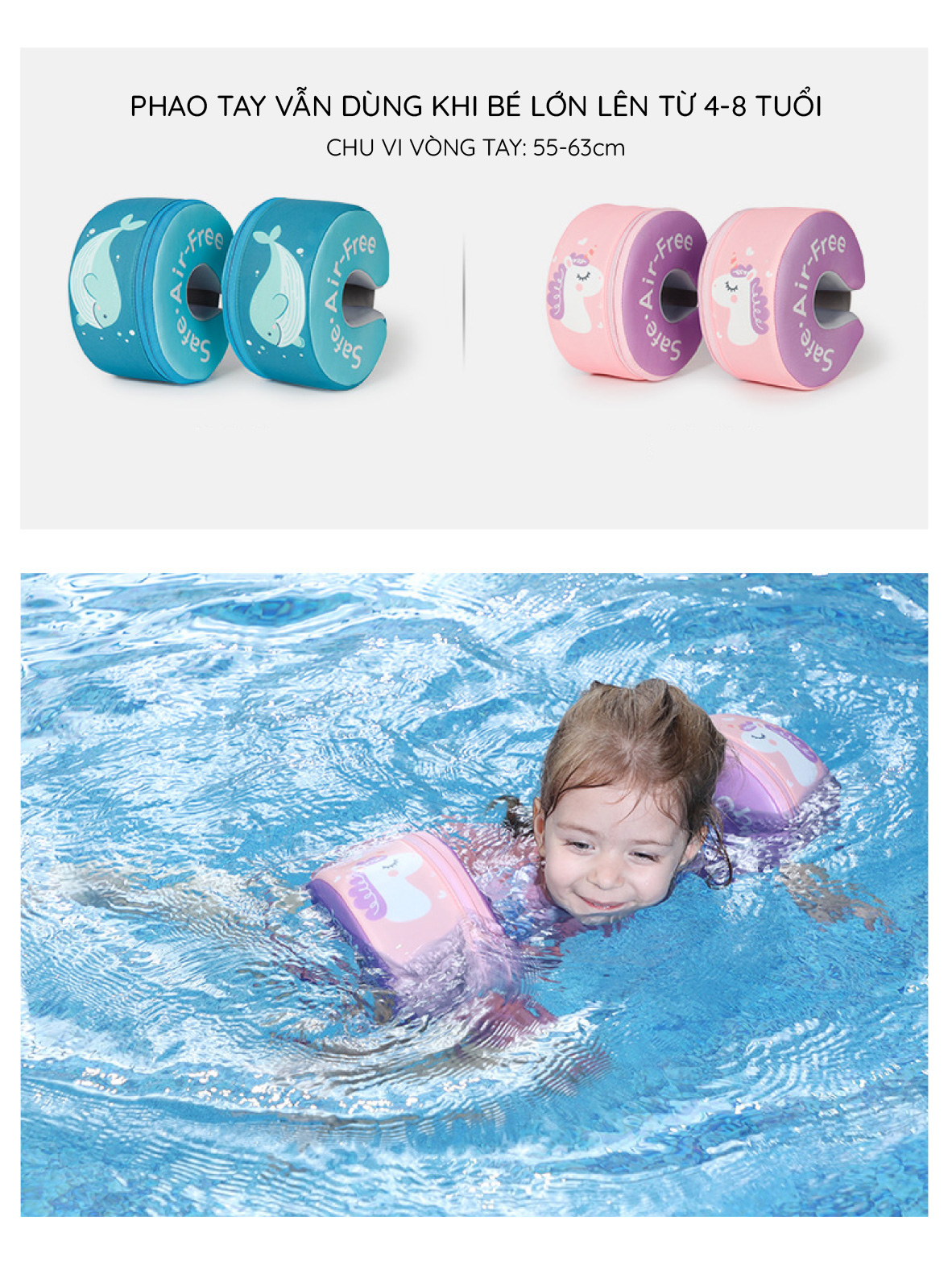 ✓ Với thiết kế an toàn khi sử dụng, bé sẽ hoàn toàn tự do vui chơi, bơi lội mà không cần trợ giúp của ba mẹ.