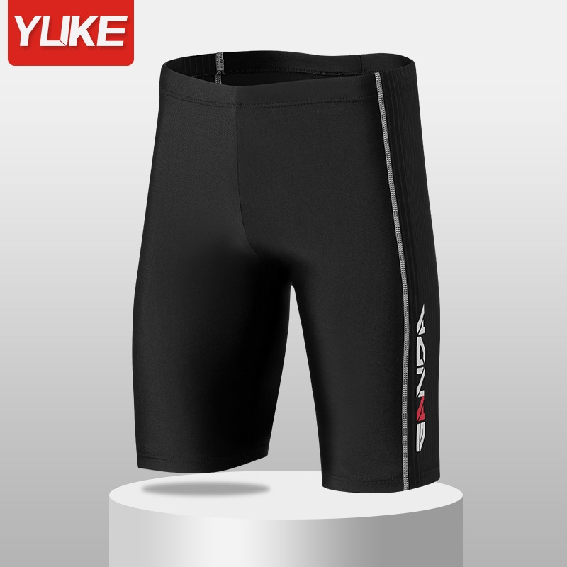 Đồ bơi nam tay ngắn quần đùi 2 lớp hiệu YUKE, co giãn đàn hồi, màu đen phối sọc thể thao cá tính
