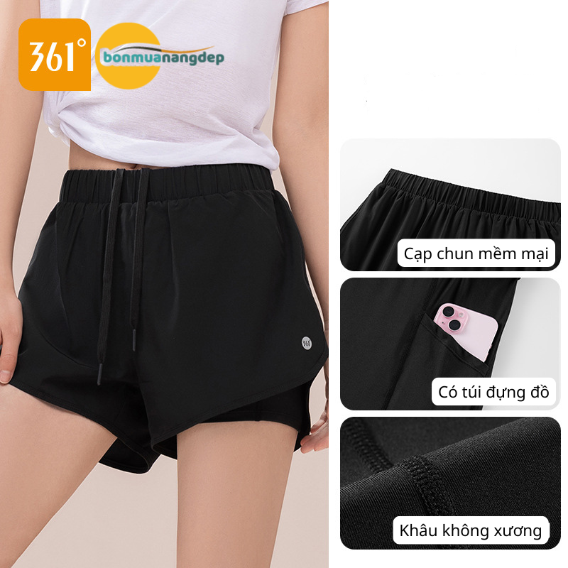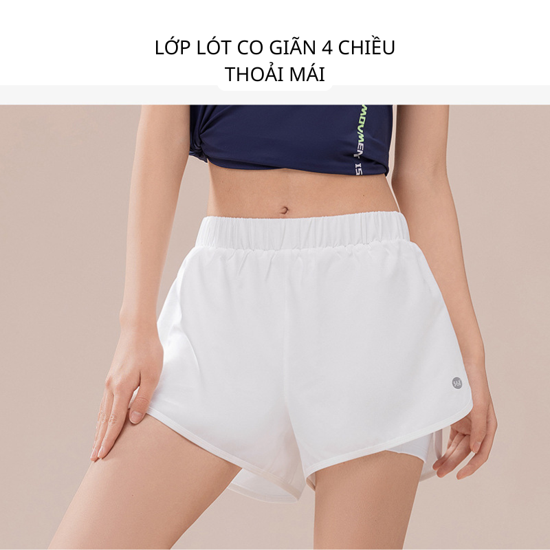 - Thiết kế: Quần short thể thao 2 lớp, form rộng trẻ trung, có túi đựng đồ