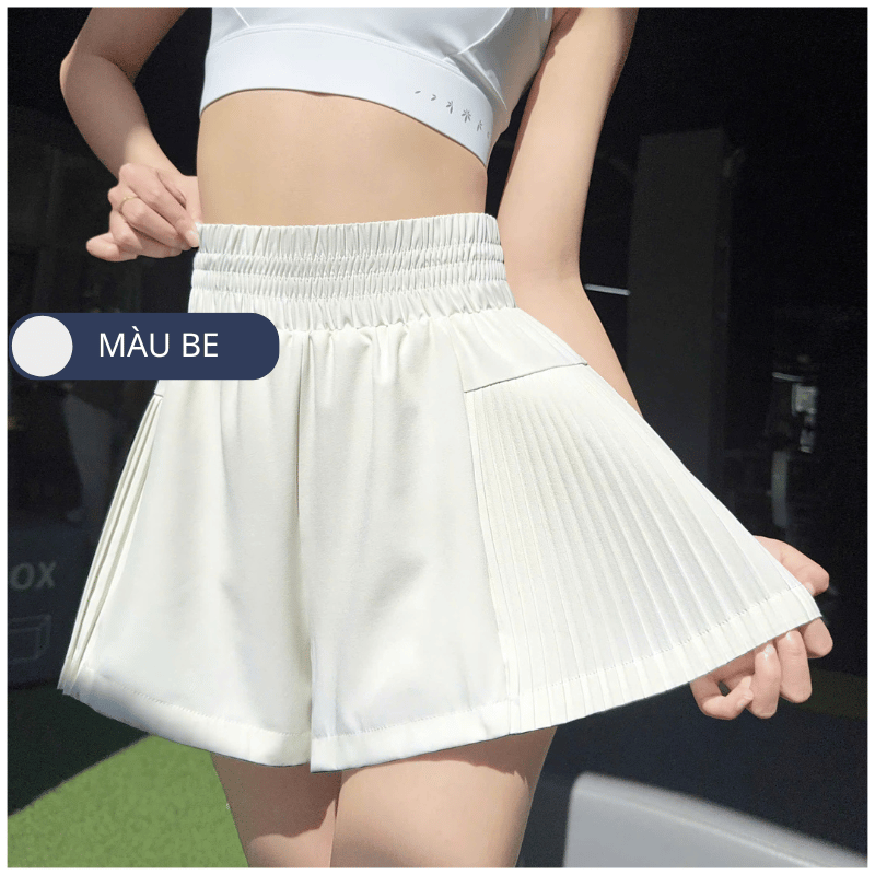 - Thiết kế: Quần short thể thao 2 lớp, điểm nhấn là phần thiết kế xếp ly hai bên hông bắt mắt và sành điệu